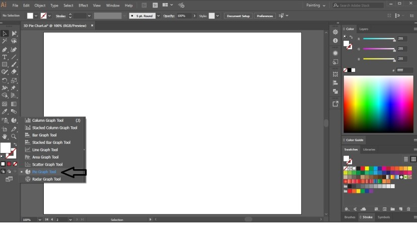 To create a 3D pie chart with percentages in a circle, Launch Adobe Illustrator and create a new document. Now follow the below steps: