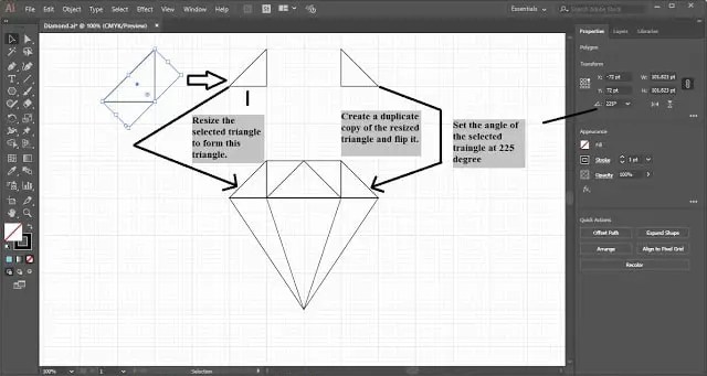 Now change the size of the triangle as shown in the image below and again make a duplicate copy of the resized triangle. Select the duplicate copy and click on Flip Along Horizontal Axis.