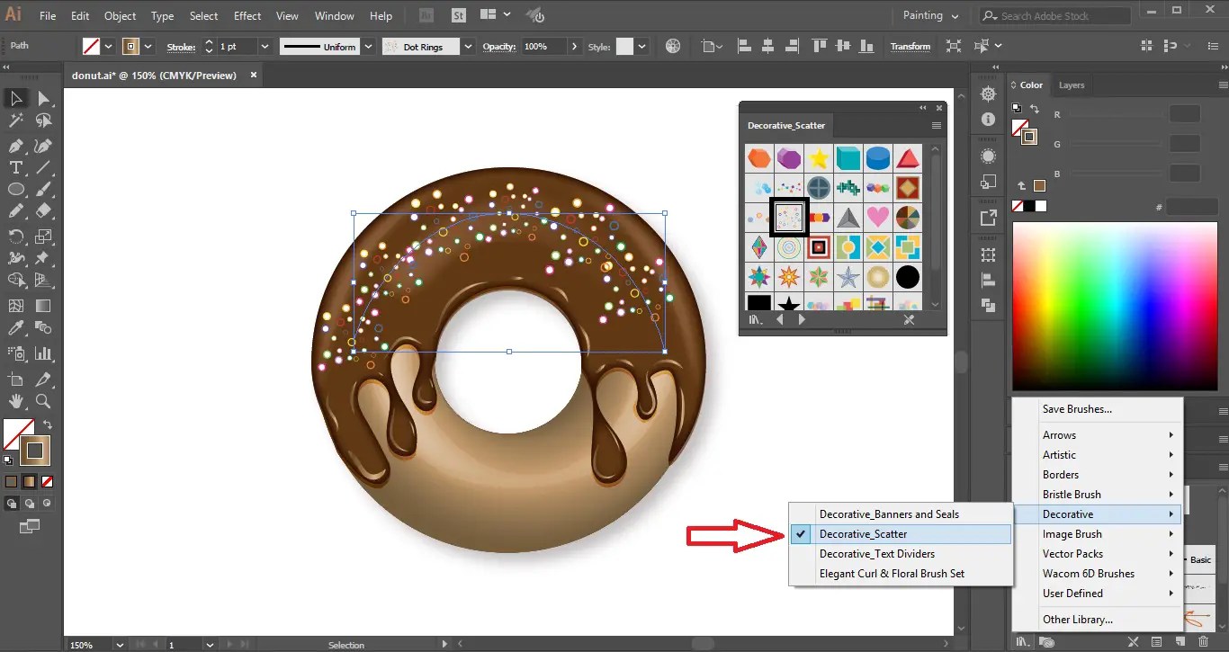 Now open the Brushes Panel and select Dot Rings Decorative Scatter Brush.
