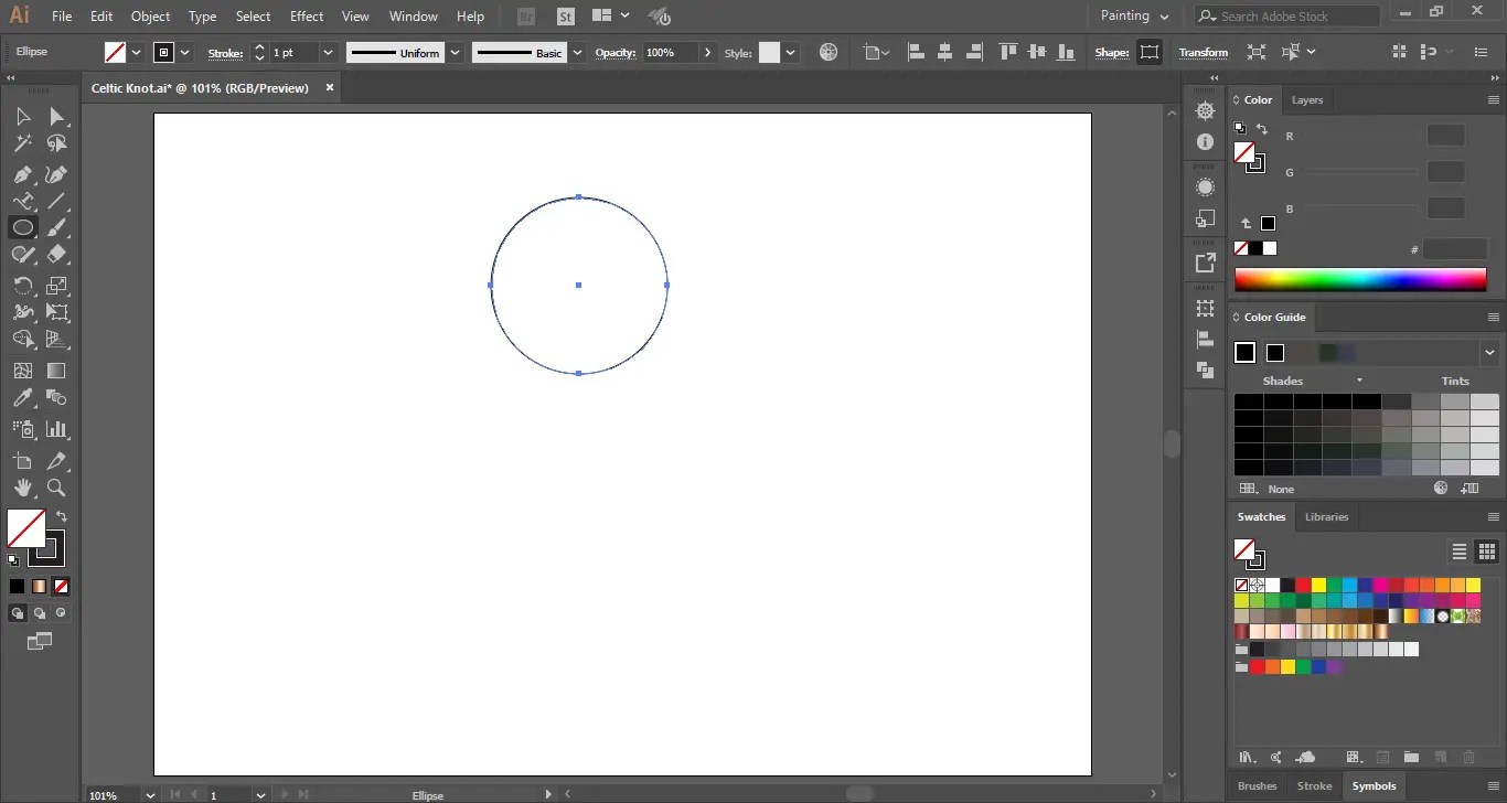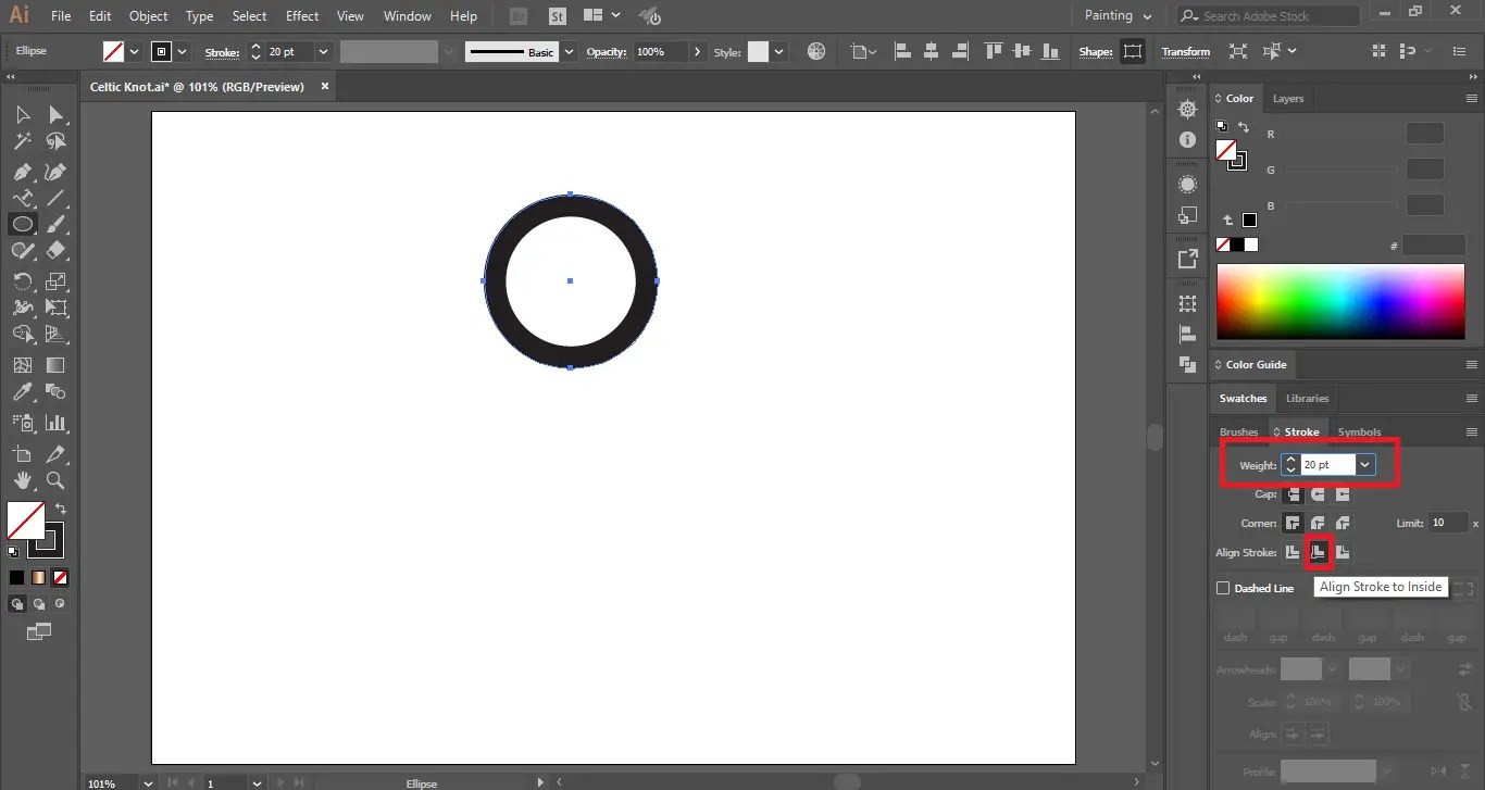 Select the Ellipse Tool and draw a circle on the artboard. Turn off the Fill color and select the Stroke Color.