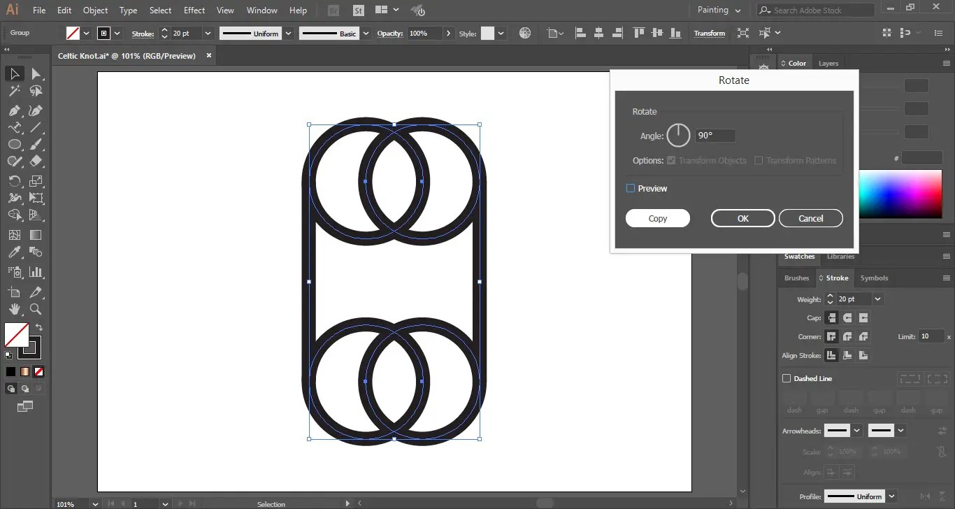 In the Rotate dialogue box, set the angle to 900and click on Copy.