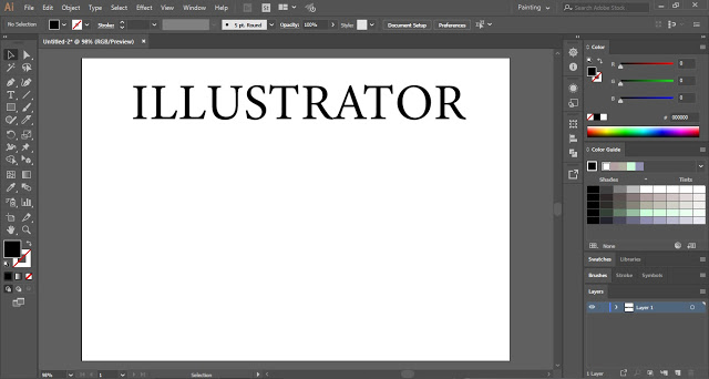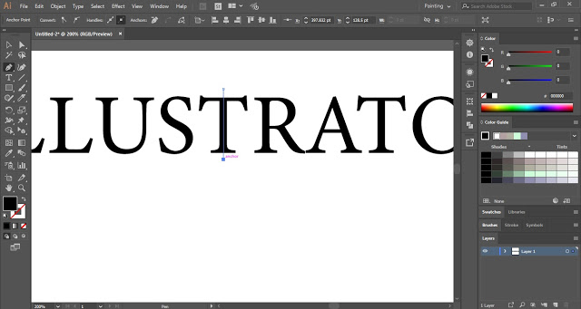 Launch Adobe Illustrator, and create a new document. Now, select the Type Tool from the Tool Panel and type the word. Choose a word that has an odd number of letters.