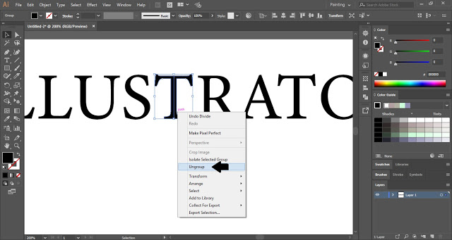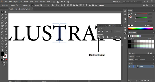 When you will click on Divide, the letter T will get divided into two parts. Later on, Ungroup the two parts of the letter T.