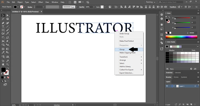 Now select the text and make it an editable text by Creating Outlines and then Ungroupingthe letters.